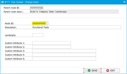 IT_SCENARIOS_LIST | Input table with a list of scenarios to be executed. One or multiple values can be passed. The scenario ID is visible under each node in the testing cockpit. To see the particular ID go to edit mode, choose node, and select icon. ![]() Example: ![]() |