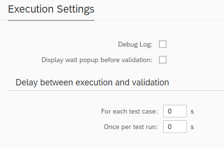 Similarly to the wait popup, these options introduce a delay between starting the test run and/or between injecting test case data and result validation. If we know that backend processing or integration platform mapping could take a significant amount of time, in this section such a delay can be configured. Thanks to this Int4 Suite will wait before trying to validate integration platform and/or the backend - depending on the test type.