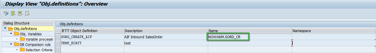 Example: For NOWAKM namespace and SORD_CR interface name - the name of the interface should be NOWAKM.SORD_C