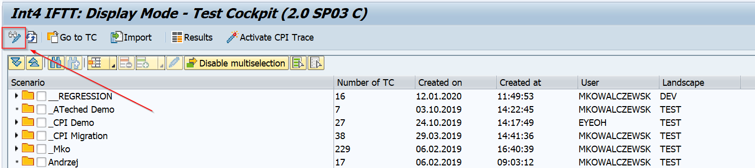 Launch Test Cockpit (tcode /INT4/IFTT_COCKPIT).