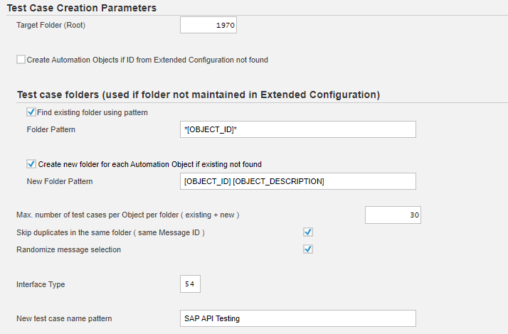 Define rules about Test Case folders in case folder was not maintained in Extended Configuration. You can ask Robot to search for an existing folder or create a new one using a search pattern. For more information about possible Search Patterns, please open the F1 help.