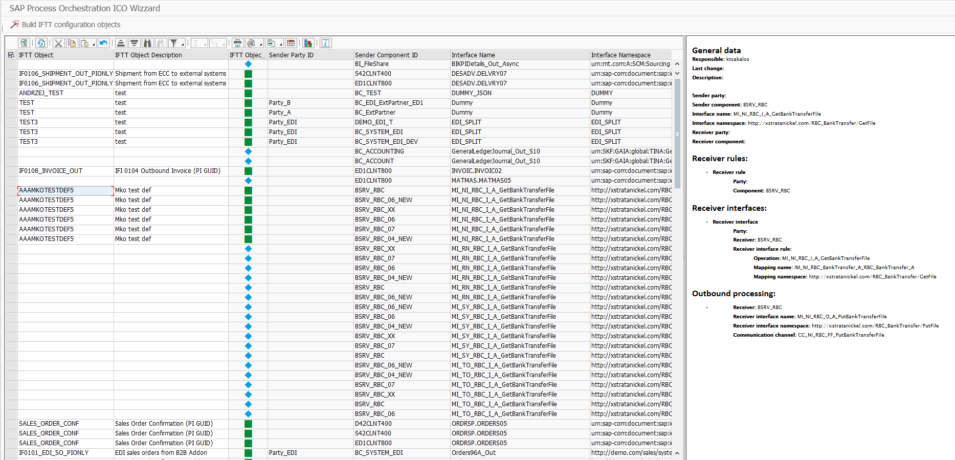 After choosing the environment and the filtering criteria, you will see all configuration objects in SAP PI/PO system. The objects will be based on Integrated configuration (Java scenarios) or Receiver Determination (ABAP stack scenarios):