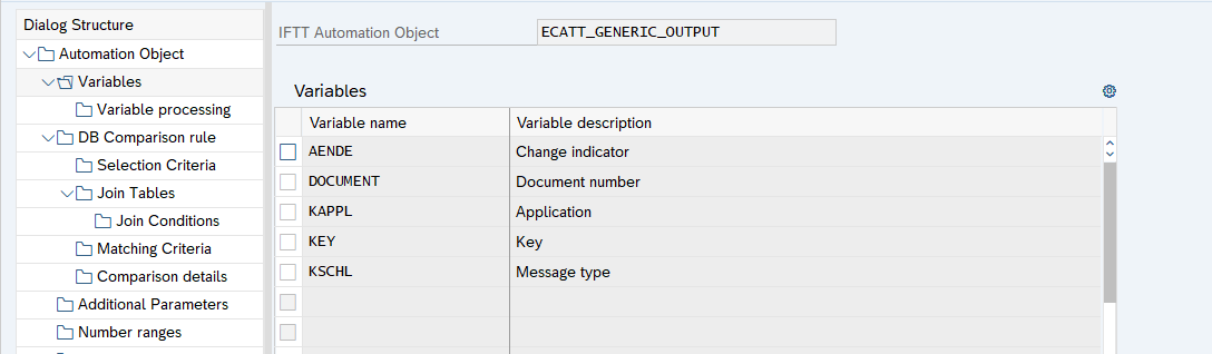 interface type, document number (in this case: ECATT script name). Only after we can input values for all variables declared the object definition used for this test case. We have to select the newly created test case in edit mode and hit the container button.