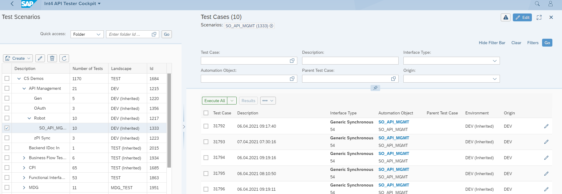Int4 APITester allows for execution of single test cases and also testing scenarios with varying complexity, consisting of multiple test cases. Test cases to be executed as scenario should be contained in single folder in APITester.