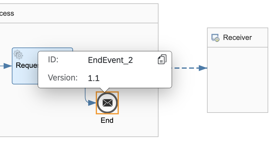 The IFlow needs to be modified to use a Request Reply call instead, with the response routed to the next step to test synchronous response. The following diagram shows an example with a Request Reply, and the response routed to the End event.