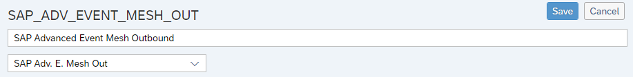 SAP Adv. Event Mesh Queue | SAP Advanced Event Mesh Queue ID, where the message should be published. Value help will show Queues available in the Selected Message VPN. Applicable only if Queue was selected in SAP Adv. Event Mesh Post to parameter. | TestQueue1 |