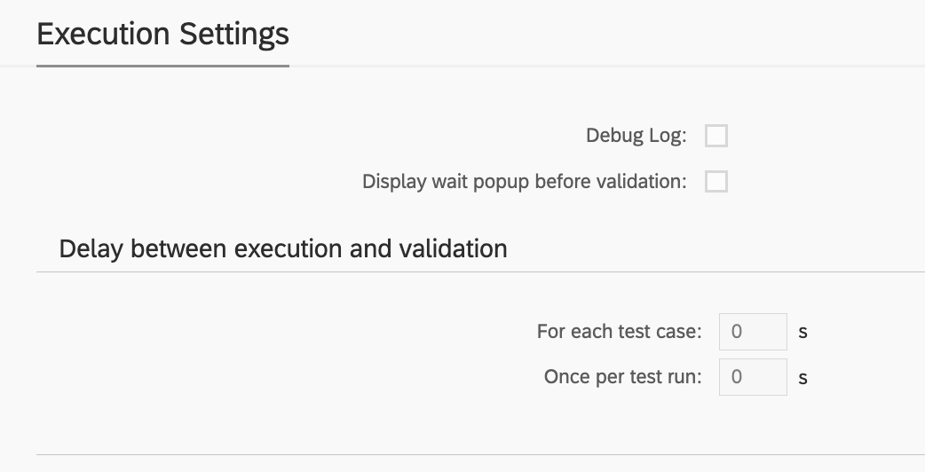 Similar to the wait popup feature, these options allow for a delay to be configured between the initiation of the test run and/or between the injection of test case data and the validation of results. If it is anticipated that backend processing or integration platform mapping may require a considerable amount of time, this section allows for the configuration of such delays. As a result, Int4 Suite will pause before attempting to validate the integration platform and/or the backend, depending on the type of test being executed.