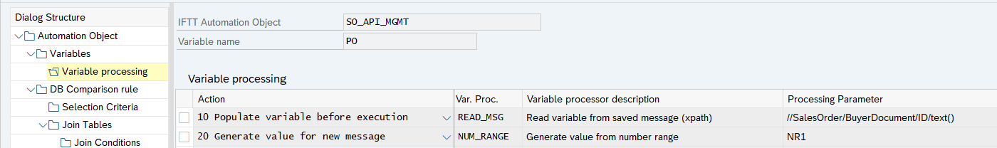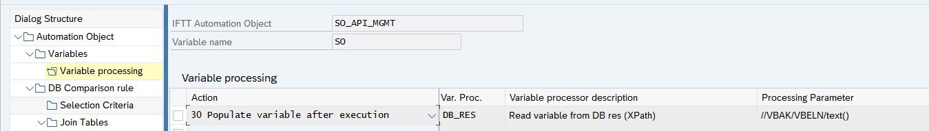 Database Comparison rules are inherited from generic automation object for Sales Order: GENERIC_SO.