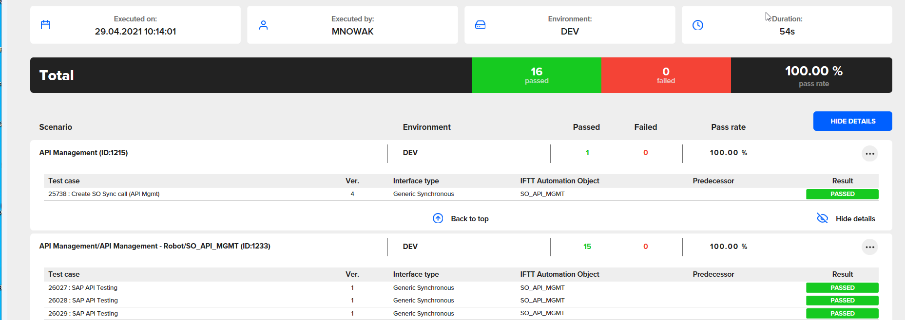 Int4 IFTT will validate the SAP API Management part. At the same time, it will validate created test sales order, comparing it to the reference one posted with a reference message saved as a test case.