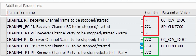 | Receiver Channel Landscape to be stopped/started | CHANNEL_ZL | Landscape on which below channel should be stopped/started. This parameter is optional, but when it is provided, the channel Name, BC, Party must be grouped with Landscape by the same grouping ID | |