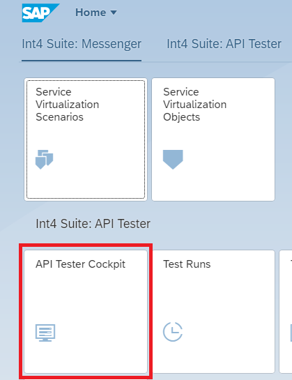 To begin, log into the SAP Fiori cockpit. Depending on your user authorization, you will see a screen with a set of Fiori tiles. Locate the tile related to Int4 APITester Cockpit and click it.