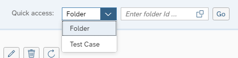 For direct access to a specific folder or test case, use the Quick Access feature located above the folder list. Select either "Folder" or "Test Case," input the corresponding ID number, and click Go to navigate to the desired object.