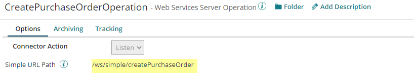 Boomi: Operation in Process to get input payload | The name of the operation to get the input payload | listenWebService |