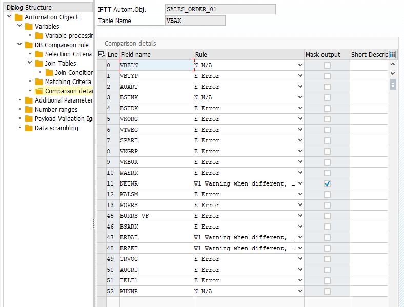 The comparison of reference and the new document is based on table and field level. Finally, when the definition contains tables and the logic of how rows from the tables will be fetched, it is time to specify fields from each table that will be compared.
