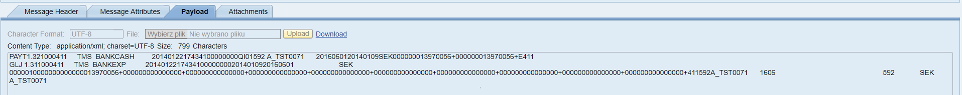 Example of message from PO monitor that stores flat-file payload: