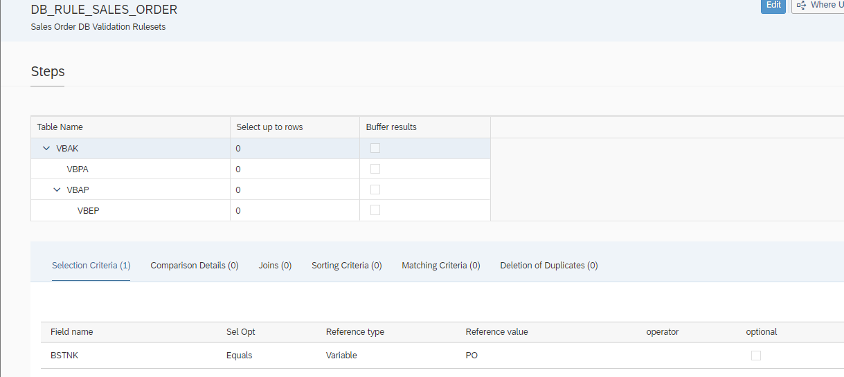 Fetch headers of reference and newly created sales order based on variable PO from the Automation Object where DB Rulesets will be used