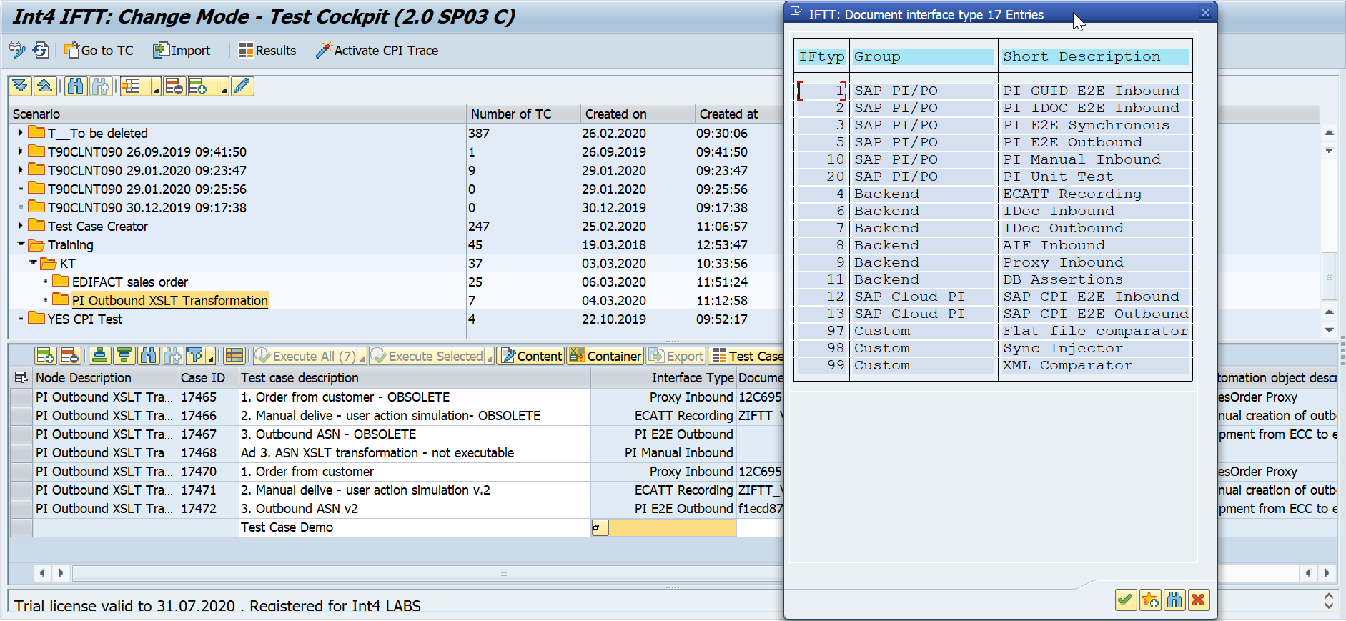 Launch Test Cockpit (tcode /INT4/IFTT_COCKPIT).