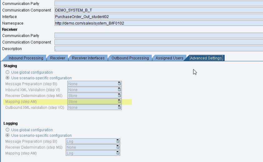 When you are staging the AM version in your global or interface specific settings the interface in the SAP PO monitoring that you can see it’s not the sender interface, but the receiver interface. Due to this some additional settings are needed.