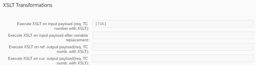 Choose parameters based on your requirements (you can use all of them at the same time). In our example, we are using Execute XSLT on input payload as we need to apply a transformation to the input payload.