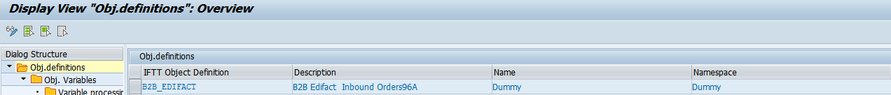 - Go to transaction /INT4/IFTT_CONF and create a new object definition, e.g.: