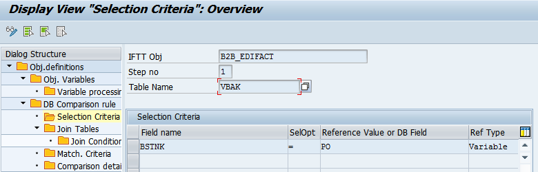 - Provide data for selection for step #1. Here you define which values will Int4 IFTT look for in the header table of the document to find the newly created document for comparison on the ECC site.