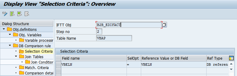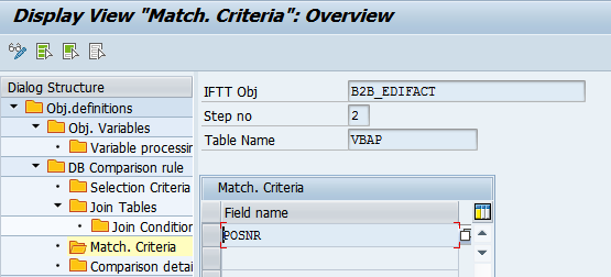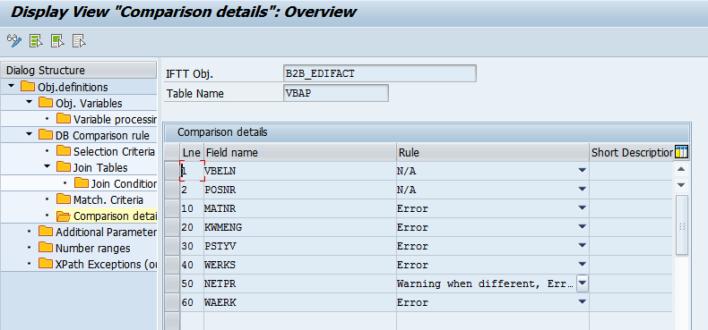 - Define comparison details for the VBAP table: names of the fields to be compared and rules that should be applied.