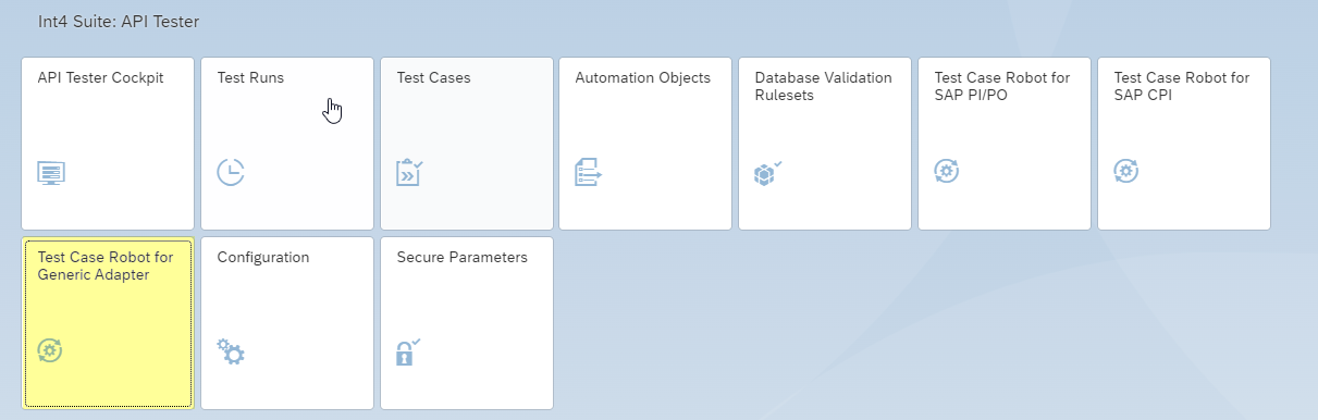 To access the Test Case Robot for Generic Adapter open the Test Case Robot for Generic Adapter tile.