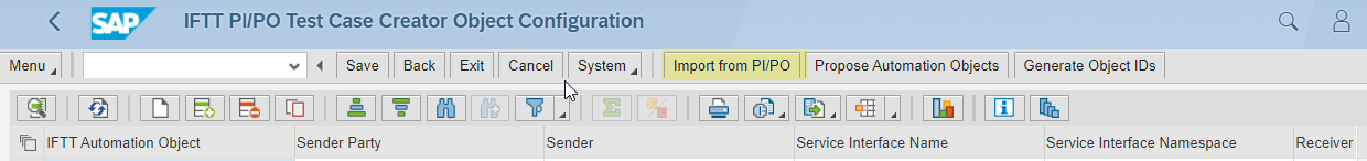 In the beginning, the list will be empty. To import ICOs from SAP PI/PO, click on Import from PI/PO button.