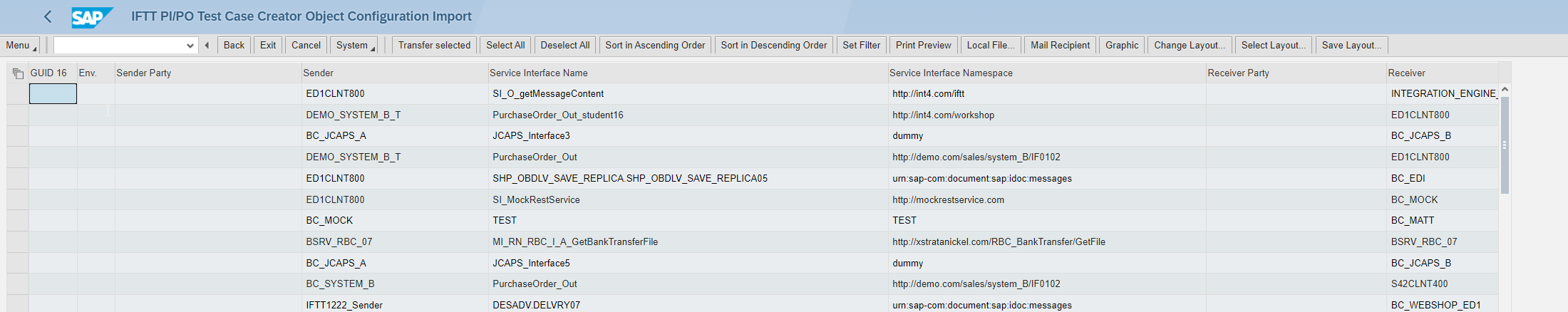 Select required rows and transfer entries to Robot by Transfer selected button. You may import SAP PI/PO interfaces multiple times. The results will be appended to the current robot configuration list.