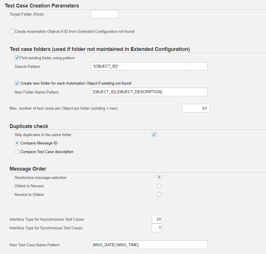 Suppose you didn't specify Automation Object ID in Extended Configuration, or Robot won't find a given object. In that case, you could select a checkbox to force the creation of an automation object during execution (checkbox Create Automation Objects if ID from Extended Configuration is missing).Define rules about Test Case folders in case folder was not maintained in Extended Configuration.