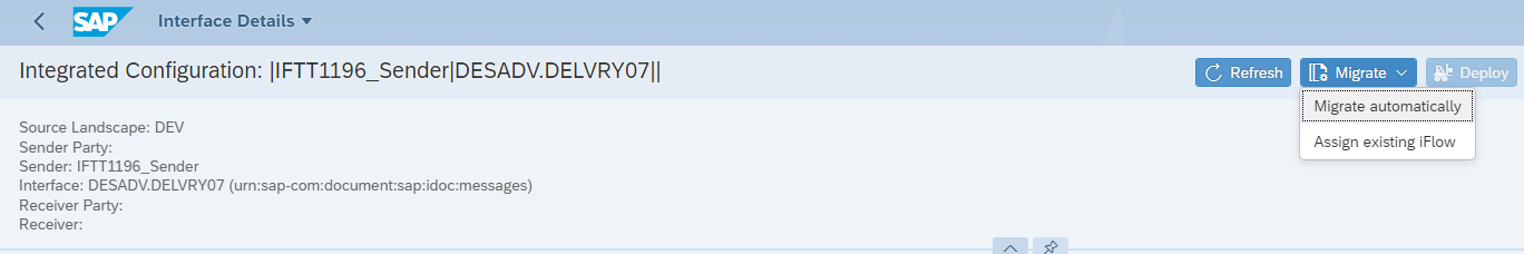Notice that you can migrate one Integrated Configuration to two separate iFlows - Inbound and Outbound. This functionality is supporting for example IDoc or Proxy dispatcher design approach, where inbound connectivity, outbound connectivity and main mapping logic are split into multiple iFlows connected via JMS or ProcessDirect.