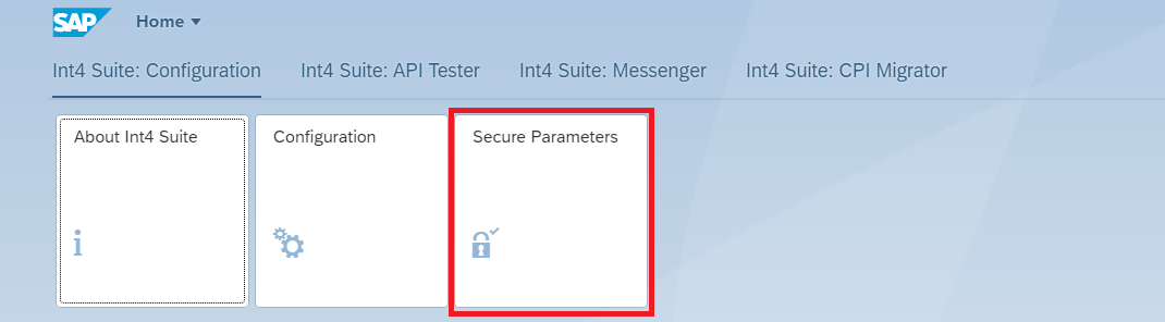 To start configuration for Secure Parameters, log into the Fiori launchpad and select the “Secure Parameters” tile.