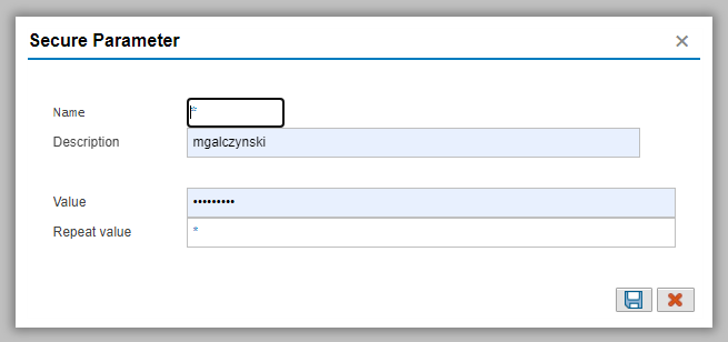 In this section we document only how to create and store secure parameters. Usage of those is possible by assigning them to Variables. Read more in Variables & Variable processing manual page.