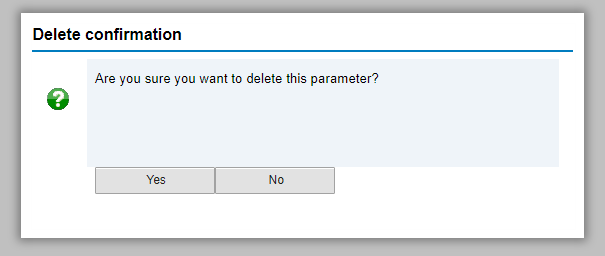 Click the parameter to be deleted and click the Delete Parameter button. A confirmation popup will appear.