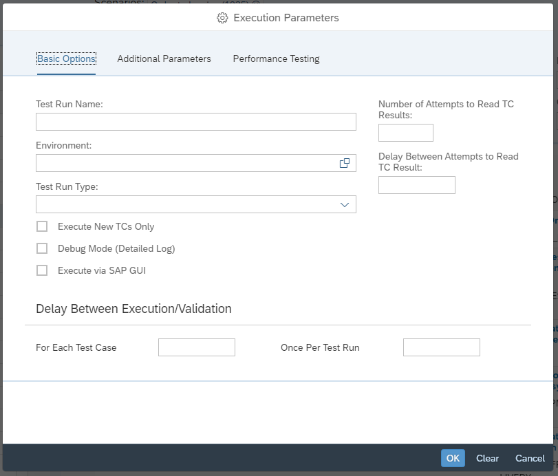 Performance Testing tab in Execution Parameters