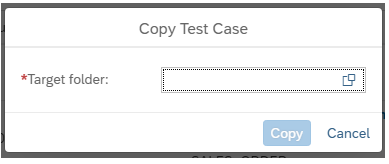 The Test Case report allows for convenient copying of test cases to new folders. Select test cases for copying and click the “Copy” button on the toolbar. A pop-up window will appear, asking to provide a target folder ID. Type in the folder ID or use the search help button to open list of folders.
