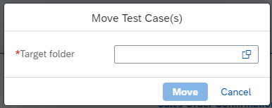 The Test Case report allows for convenient moving of test cases to new folders. Select test cases for moving and click the “Move” button on the toolbar. A pop-up window will appear, asking to provide a target folder ID. Type in the folder ID or use the search help button to open list of folders.
