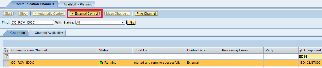 - To let Int4 IFTT control SAP PO channels, the channel control must be set to External: