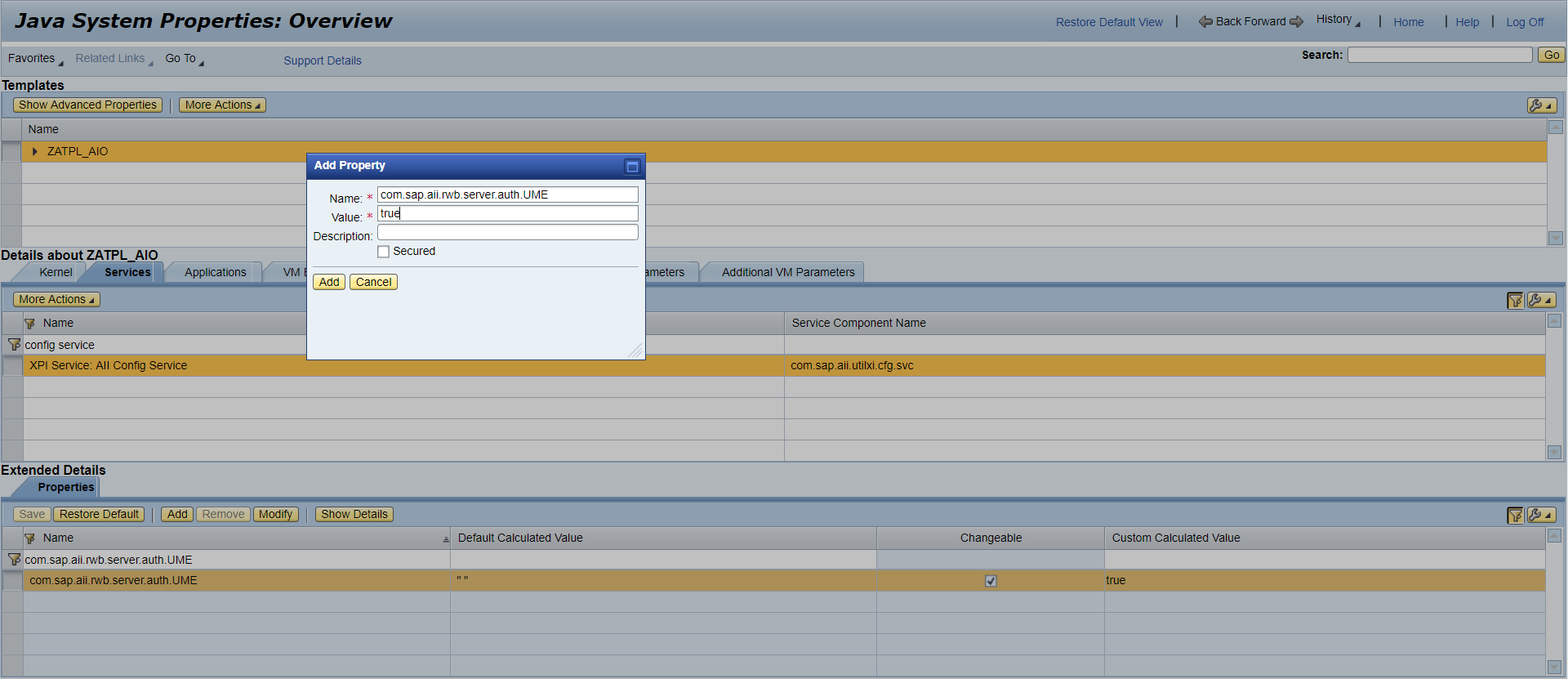 10. Choose "XPI Service: All Config Service" then in the "Properties" bookmark, choose the "Add" button