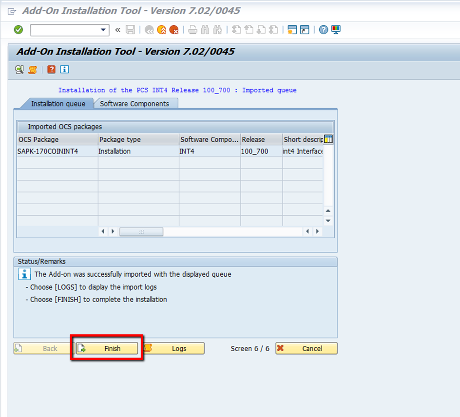 In order to upload *.SAR file to your SAP system you need to enter SAINT transaction. Make sure that the installed version of Add-on Installation Tool matches the one required for this particular add on release.