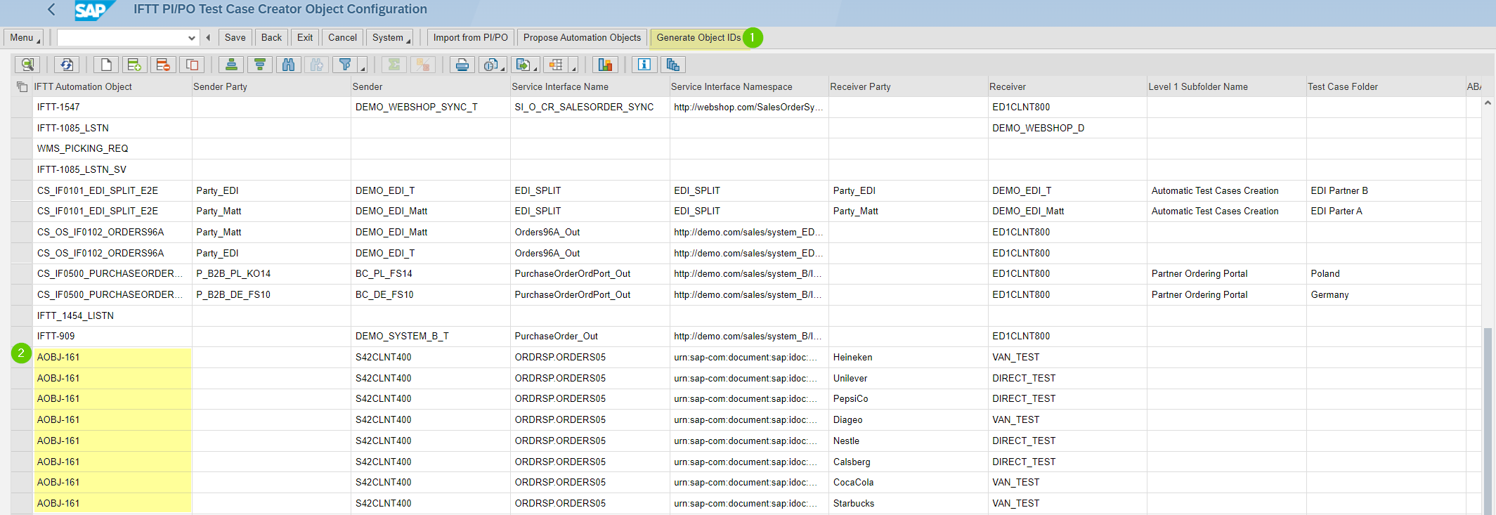 Suppose the system doesn't find an existing automation object for selected Interface & Namespace. In that case, you can automatically create them by clicking on the Generate Object IDs button.