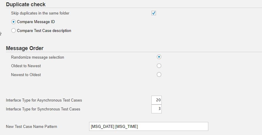 select Skip duplicates in the same folder in case you don't want to have more than one test case with the same MessageID,