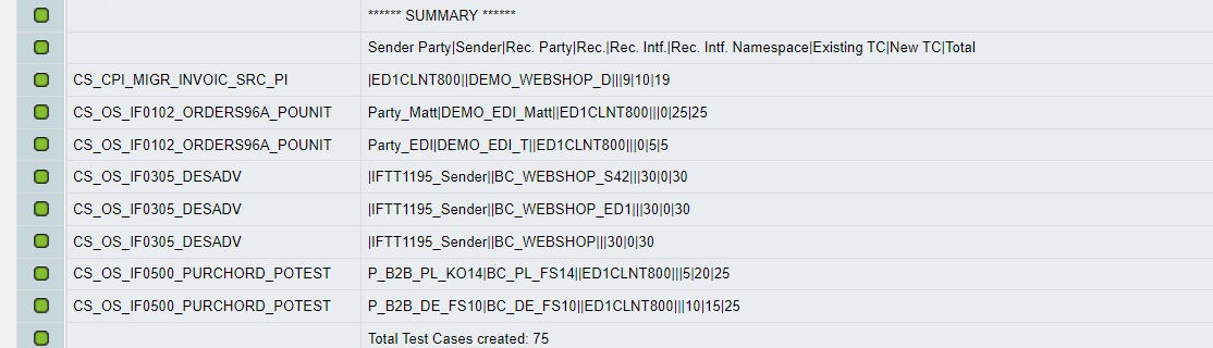 SAP PI/PO Robot automatically fetched messages from PI/PO and created a folder with test cases based on criteria from the selection screen. You can find a summary at the end of the list: