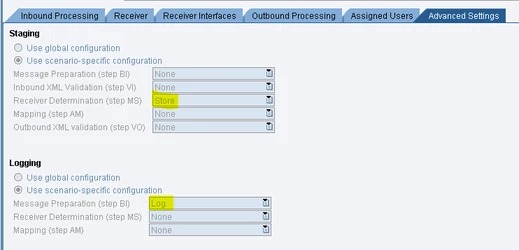 There is no staging for synchronous messages. Whatever you configure will be ignored anyway.Or, this might be already settings of global persistence settings, as Int4 recommends it: SAP PI/PO JAVA Stack Persistence.