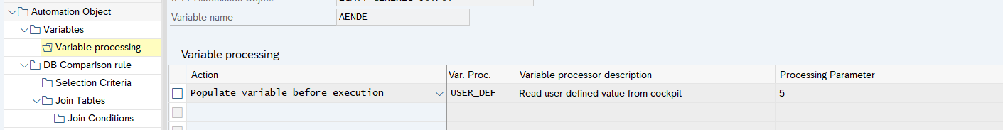 1) In object definition → variable processing, a USER_DEF processor must be defined for Action: Populate Variable before execution.