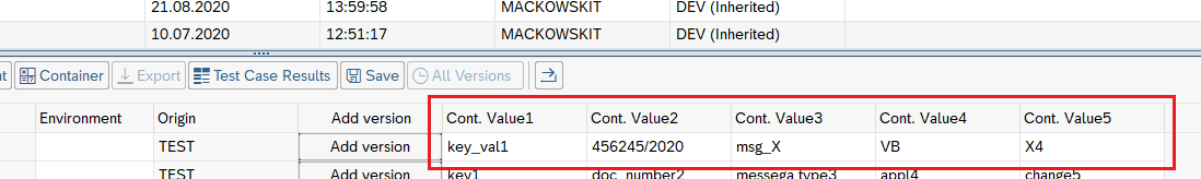 interface type, document number (in this case: ECATT script name). Only after we can input values for all variables declared the object definition used for this test case. We have to select the newly created test case in edit mode and hit the container button.