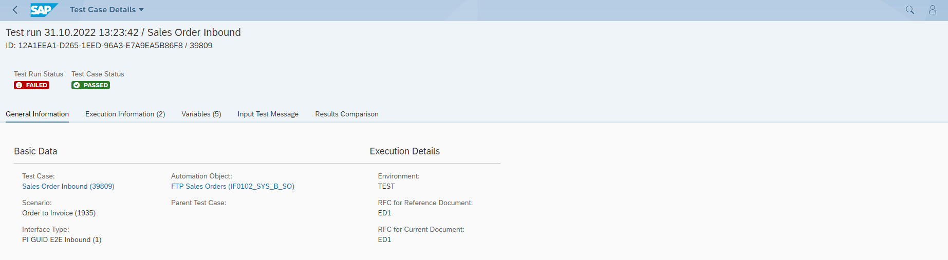 Test Case Run details - header and General Information