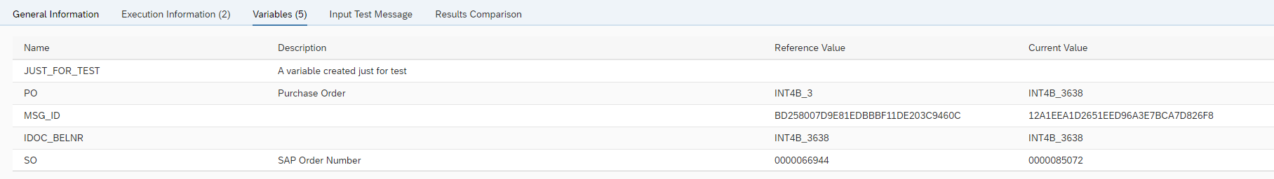 Execution Information contains the log of the test execution. In normal mode the log is brief and displays key information to identify the test artifacts (e.g. the message ID’s on the integration platform). Enabling Debug Info in Execution Parameters will provide more technical details on test execution and issues.