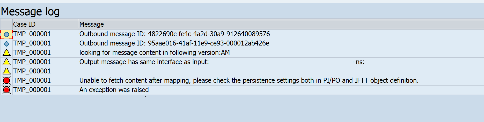 Error message: "SAP PO outbound message after mapping not found" while running a SAP PO Outbound test case.