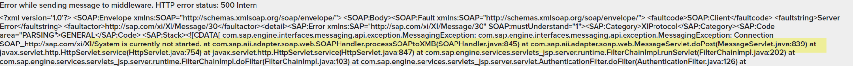 Error message: "HTTP error status: 500 Intern - System is currently not started "